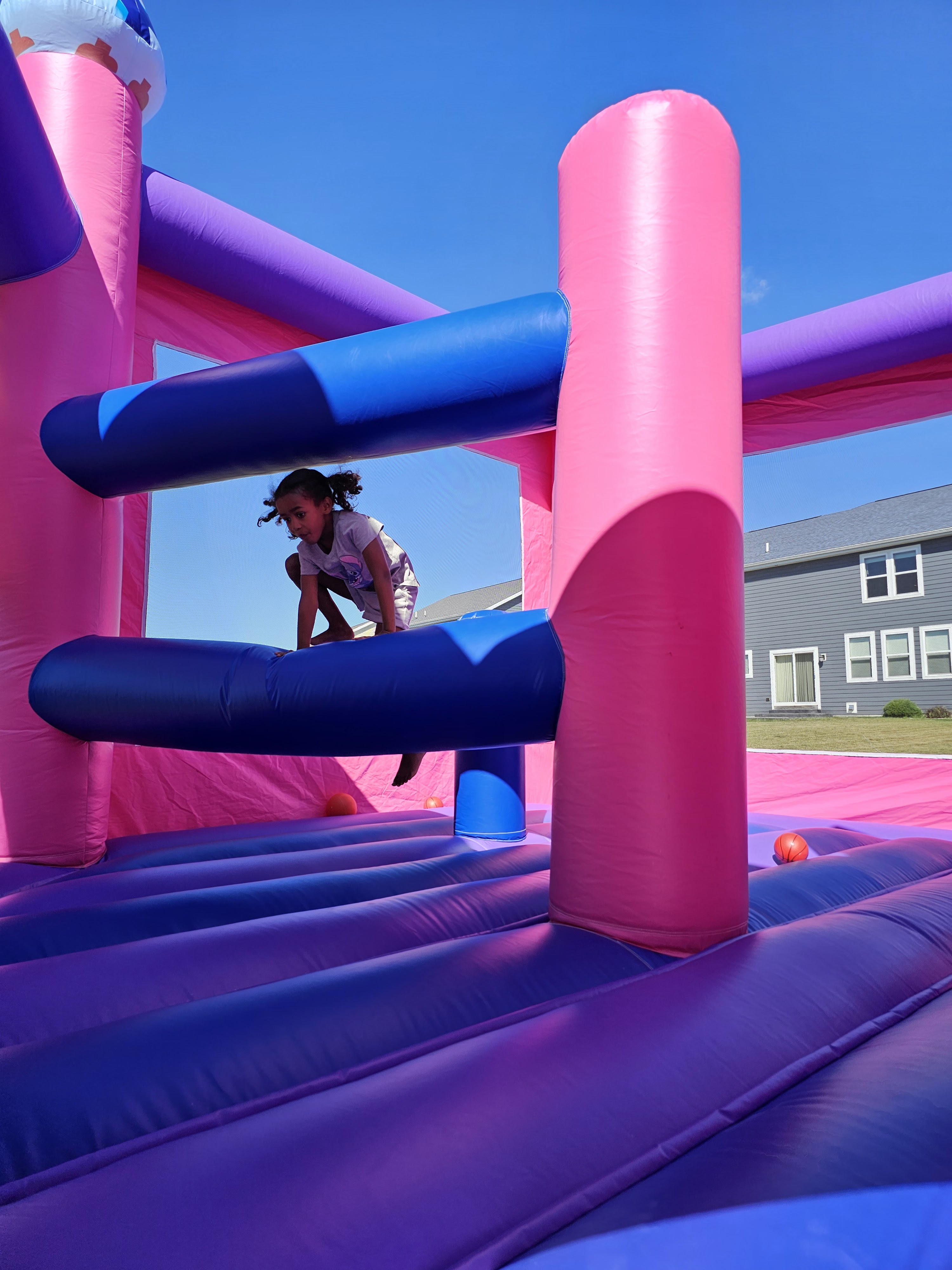 Favorite inflatable by far. This inflatable has two runways for racing.